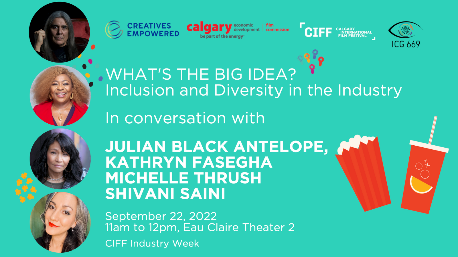 WHAT’S THE BIG IDEA? INCLUSION & DIVERSITY IN THE INDUSTRY – we all want our screen industry to be more inclusive, diverse and accessible. It’s one thing to say it, but how can we really put these IDEAs into action for our Industry? Join CIFF and our expert group of panelists to discuss the actions we can take – individually and collectively – to make the Alberta screen industry truly a space for all to create.