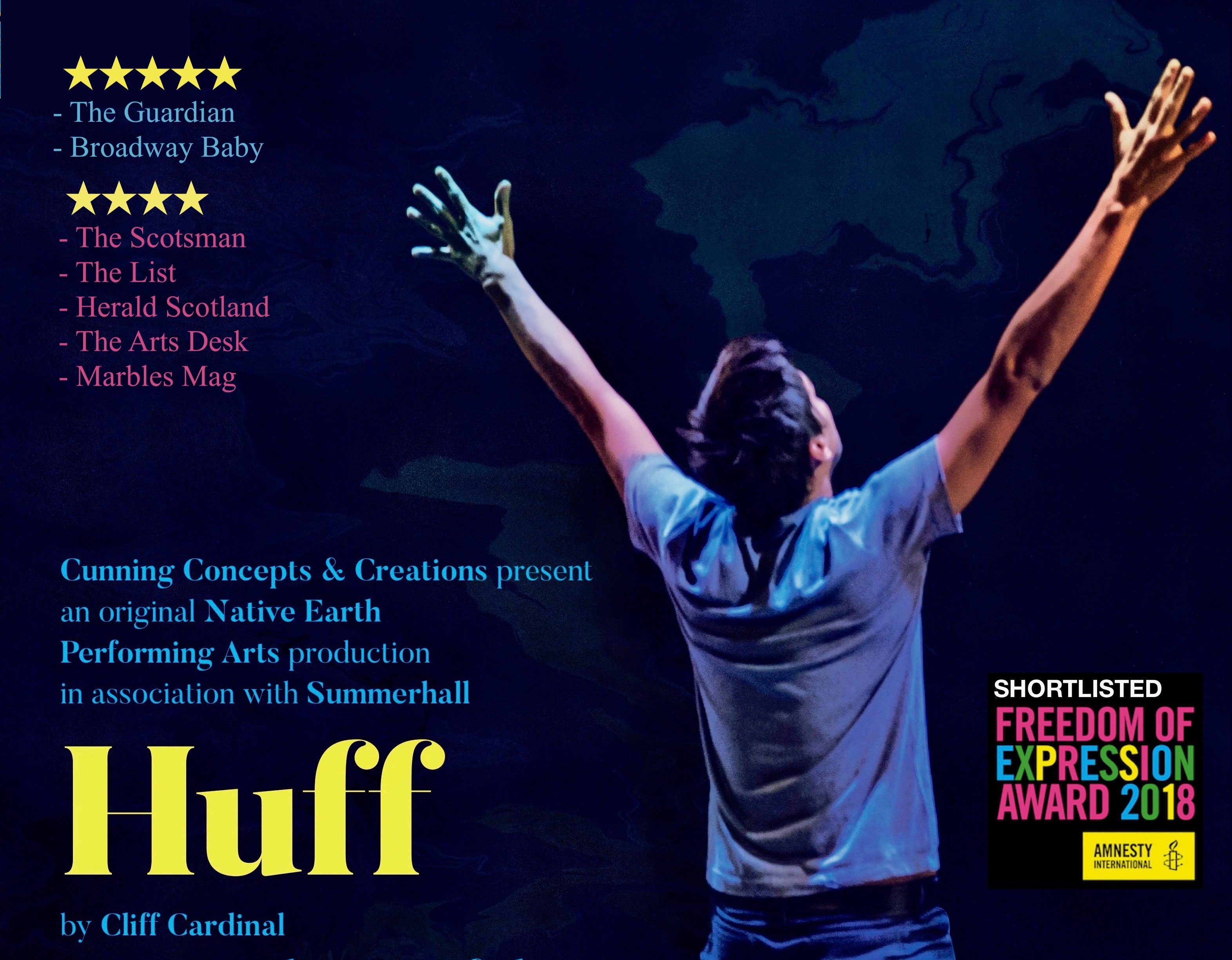 HUFF is the wrenching, yet darkly comic tale of Indigenous brothers, caught in a torrent of solvent abuse and struggling to cope with the death of their mother. Their fantastic dream world bleeds into haunting reality, as they’re preyed on by the Trickster through hallways at school, the abandoned motel they love more than home, and their own fragile psyche. With his signature biting humour and raw, vivid imagery, Huff is a daring solo show by award-winning Indigenous playwright Cliff Cardinal, one of the most exciting new voices in Canadian theatre. After touring extensively across Canada and Australia, this breathtaking piece came to the 2018 Edinburgh Fringe Festival as part of CanadaHub, in association with Summerhall, in Scotland. Huff was 1 of 6 plays shortlisted for the Amnesty International Freedom of Expression Award. • www.cliffcardinal.com • #hufftour #edfringe #IntoTheUnknown #CanadaHubFringe